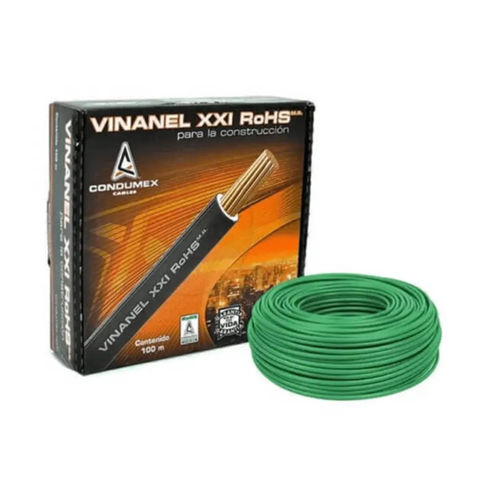 CAJA DE CABLE T.H.W. VINANEL XXI ROHS CALIBRE 8 VERDE CONDUMEX (100 MTS)