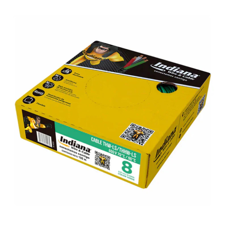 CAJA DE CABLE THW 90° CAL. 8 VERDE INDIANA (100 MTS)