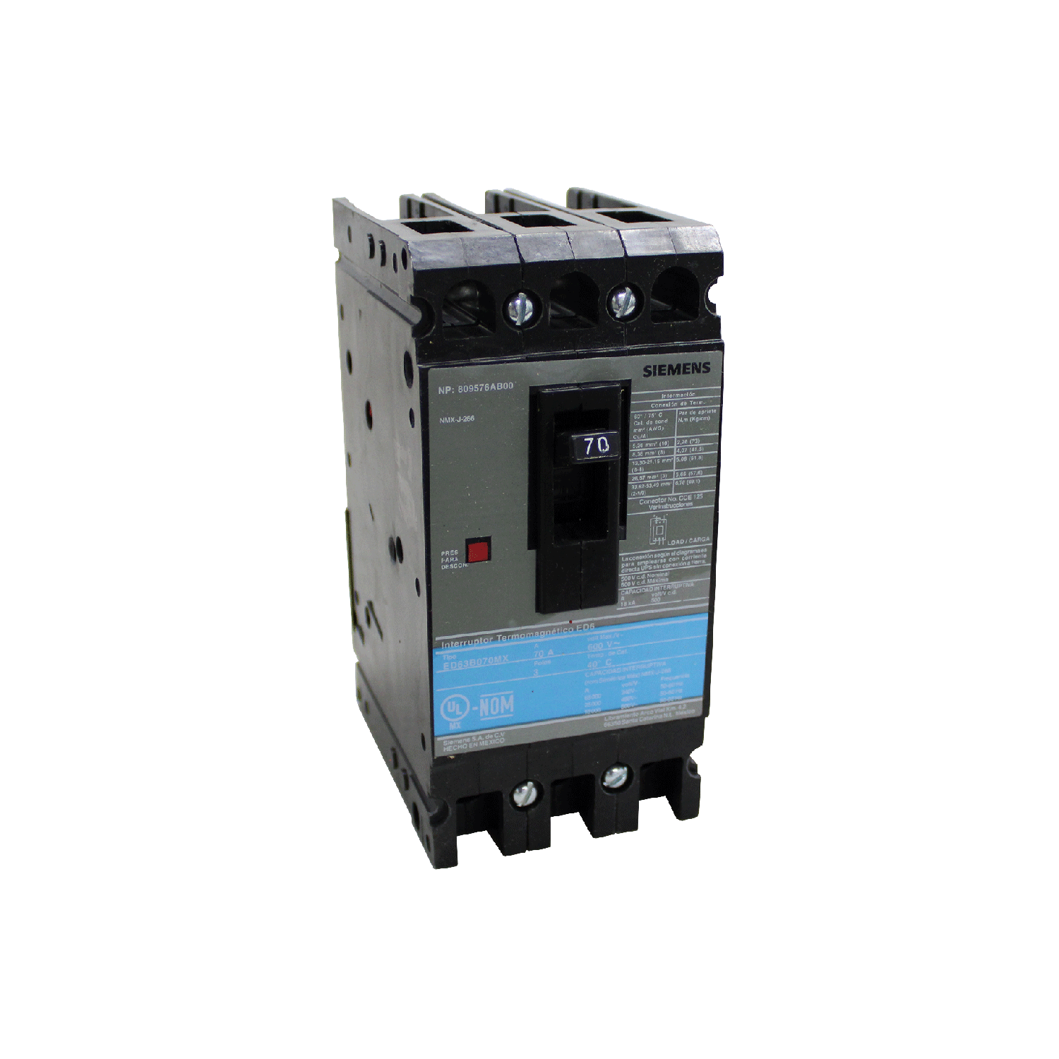 INTERRUPTOR TERMOMAGNÉTICO ED6 70A SIEMENS MX:ED63B070MX SIEMENS