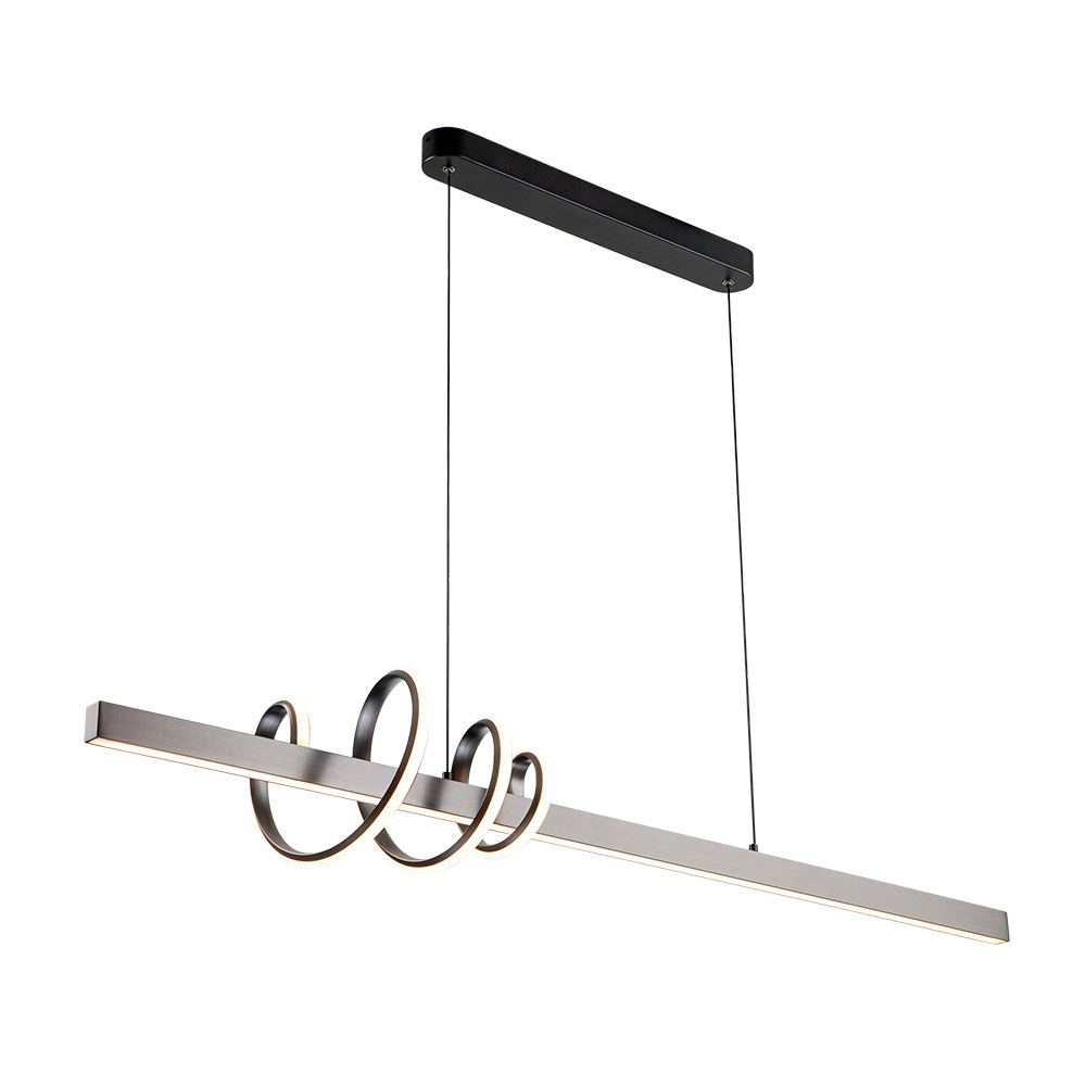 Luminaria colgante AUREA, tiene un diseño innovador y elegante con un espiral iluminado, cuenta con un acabado y materiales de alta calidad, se recomienda instalar en barras de cocina, oficinas, salas de juntas, restaurantes, cafeterías, pasillos y más.