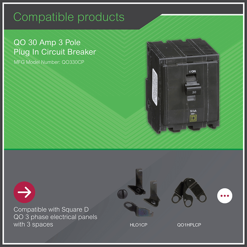 Los interruptores magnéticos térmicos de uno, dos y tres polos QO y QOB brindan protección contra sobrecorriente y conmutación en sistemas de CA y CC. Estos interruptores automáticos tienen un mecanismo de palanca libre de disparo sobre el centro con acción de apertura rápida, acción de apertura rápida e indicación de manija positiva. También tienen indicación de disparo VisiTrip, que proporciona una indicación visual de que el interruptor se disparó e interrumpió el circuito. Este interruptor QO de 3 polos tiene una capacidad nominal de 30 A a 120/240 V CA. Esta unidad proporciona una capacidad de ruptura de 10 kA y montaje enchufable. También está disponible una línea completa de funciones y accesorios instalados de fábrica, como disparadores de derivación, interruptores auxiliares e interruptores de alarma. Los interruptores QO están listados en UL bajo el archivo UL E84967 y están certificados por CSA bajo el contrato maestro CSA 153555. Los interruptores QO están listados en UL bajo el archivo UL E84967 y están certificados por CSA bajo el contrato maestro CSA 153555.