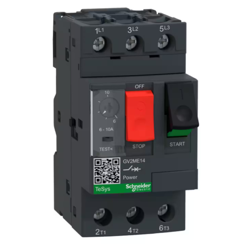 Estos interruptores GV2 proporcionan protección termomagnética a motores contra fallas de cortocircuito y sobrecargas, también funcionan como arrancadores de estos mismos. El arrancador GV2ME14 es de 3 polos, tiene una corriente nominal de 6 a 10 A, una clasificación de voltaje de 690 VCA y una frecuencia de 50/60 Hz. El interruptor GV2ME14 acepta motores de 3 kW a 7. 5 kW de 400 VCA a 690 VCA. Su protección termomagnética es ajustable ofreciendo opciones desde los 6 A hasta 10 A con un poder máximo de corte de 100kA a 400/415 VCA, además su conexión a través de terminales de abrazadera de tornillo permite una conexión segura en motores. Uno de sus principales diferenciadores es el control de arranque-paro por pulsador, el cual brinda mayor versatilidad. Finalmente, es compatible con una gran variedad de motores que cumplan con las características de este interruptor y cuenta con múltiples estándares IEC, UL, CSA, CCC, EAC. Aprovecha de los beneficios de los interruptores de motor con protección termomagnética y asegura tus motores ante fallas eléctricas.