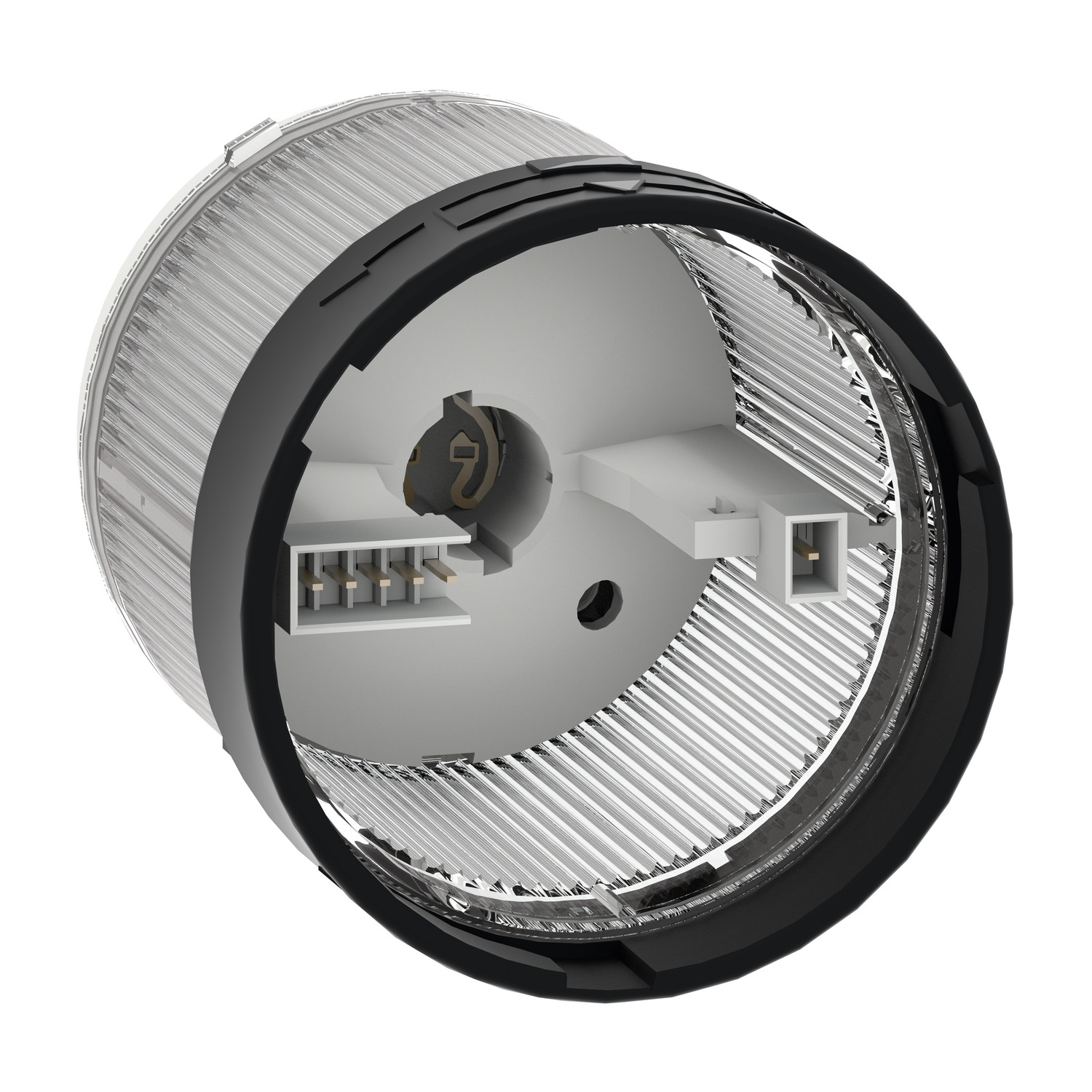 Esta unidad iluminada clara XVB de Harmony se suministra con una bombilla de hasta 250 V CA/CC, bombilla por separado, luz fija. Esta lente indicadora clara de banco está diseñada como una unidad iluminada para ser conectada con la base y crear luz de torre completa. Su LED integral ofrece una luz fija, lo que le permite mostrar claramente el estado de sus máquinas en aplicaciones como automotriz, herramienta de máquina, manejo de materiales, embalaje, estaciones de montaje, transportadores. Es resistente a los impactos, al polvo, al agua y a las vibraciones gracias a su IP66, lo que lo hace ideal para su funcionamiento en entornos hostiles. Diseño simple y modular que permite una fácil instalación con la unidad base y una luz de torre completa. Cumple con las normas y certificaciones internacionales (normas CCC, CSA C22-2 Nº 14, EN/IEC 60947-5-1, EAC, UL 508 y NEMA 4X).