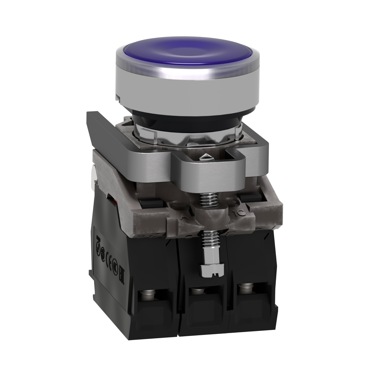 Este pulsador modular azul iluminado Harmony XB4 funciona con un mecanismo de retorno de resorte, se suministra con 110V a 120V CA y utiliza un LED universal. Tiene un bisel metálico. Este pulsador iluminado proporciona una interfaz ergonómica y visual para controlar las máquinas. Se monta fácilmente en interruptores estándar de panel de 22 mm de diámetro y se conecta a circuitos de control con conexiones clásicas con abrazadera de tornillo. Es claramente distinguible visualmente a distancia gracias a una iluminación LED brillante y duradera. Es resistente al impacto, al polvo, al agua y a las vibraciones gracias a su IP66 / IP67 / IP69 / IP69K, lo que lo hace ideal para su operación en entornos hostiles.