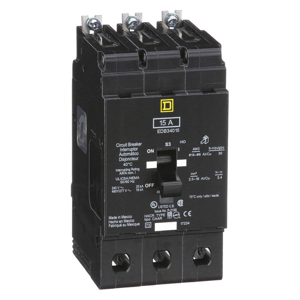 Los interruptores automáticos en miniatura marco E son interruptores de tableros de iluminación que han demostrado ser efectivos y confiables, brindan una amplia variedad de características sólidas que se usan específicamente en los tableros NF de la marca Square D. El interruptor automático marco E de la marca Square D ¨EDB34015 ¨cuenta con 3 Polos, 15 Amperes, 480Y/277 VCA de voltaje operativo máximo y una capacidad máxima interruptiva de 18/25kA, este interruptor es la solución perfecta para proteger tus sistemas eléctricos. Con su capacidad de unidad de disparo de 875 A, una corriente de retención de 270 A y una corriente nominal de 15 A, este interruptor en miniatura brinda una protección confiable y eficiente. Este interruptor automático cuenta con una capacidad de interrupción máxima de 25 kA a 120 V CA, lo que garantiza una respuesta rápida y precisa ante cortocircuitos y sobrecargas. Con su máximo voltaje operativo de 480Y/277 VCA, este interruptor automático garantiza un rendimiento óptimo incluso en las situaciones más exigentes. Además, su indicador de disparo te permite identificar fácilmente cuando se ha activado para que puedas tomar las medidas necesarias. Gracias a su tecnología termomagnética, este interruptor ofrece una protección óptima contra cualquier fluctuación o falla en el sistema eléctrico. Su clasificación HACR y sus certificación UL aseguran que cumple con los más altos estándares de calidad y seguridad. Con un montaje atornillable para mantener el interruptor en su lugar y un diseño compacto, este interruptor es fácil de instalar en cualquier tablero NF gracias a este tipo de montaje. Con tres polos y tres espacios, se integra perfectamente en los paneles NF como por ejemplo al tablero NF de la marca Square D NF430L4, entre otros más. Las dimensiones de este interruptor son de 143. 76mm (alto), 74. 68mm (ancho) y 102. 87mm (profundidad) y su temperatura de funcionamiento es de 40 grados C. Además, cuenta con una garantía de 18 meses. Protege tus sistemas eléctricos con el interruptor automático en miniatura EDB34015.