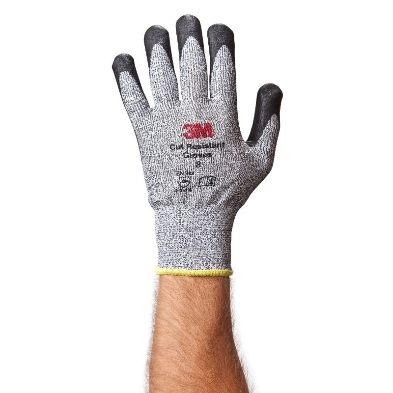 3M Agarre de comodidad WX300942421 Gris Grande Polietileno Nailon Guantes resistentes a cortes