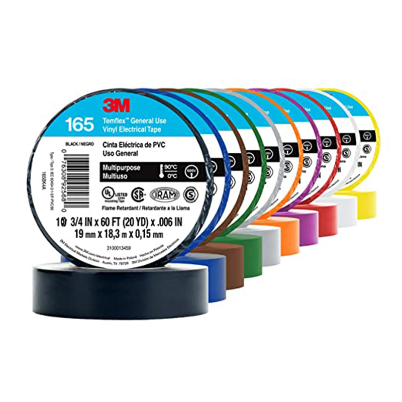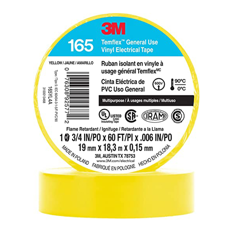 La Cinta Eléctrica de PVC 3M? Temflex? 165 de 0.152 mm (6 mils) de grosor es una cinta aislante de vinilo multipropósito y retardante a la llama. Está diseñada para funcionar a temperaturas ambiente de hasta 194 °F (90 °C). La cinta se adapta para aplicaciones en climas fríos hasta 32 °F (0 °C).