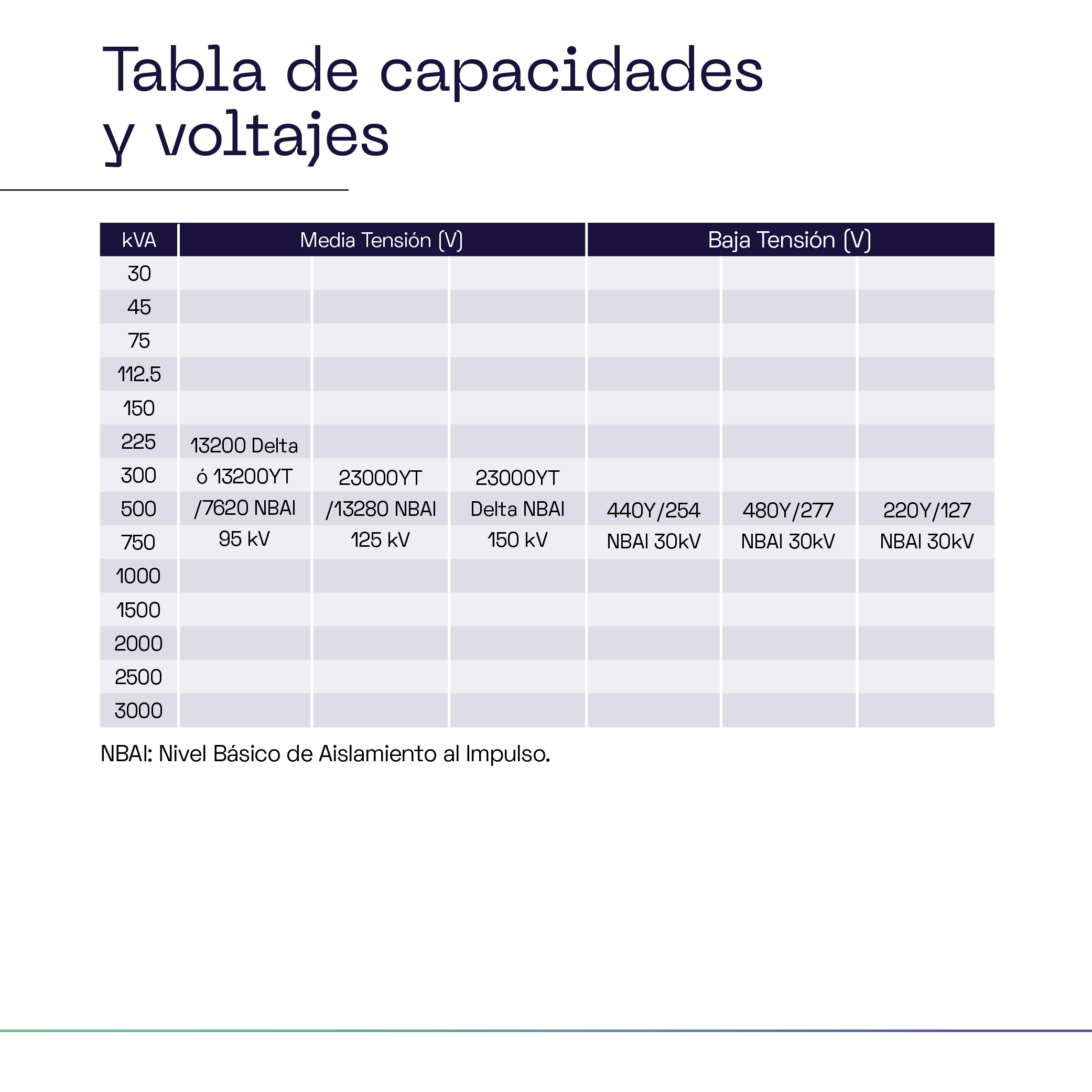 - Hasta 34,500 V conectado en delta o estrella - Hasta 200 kV NBAI