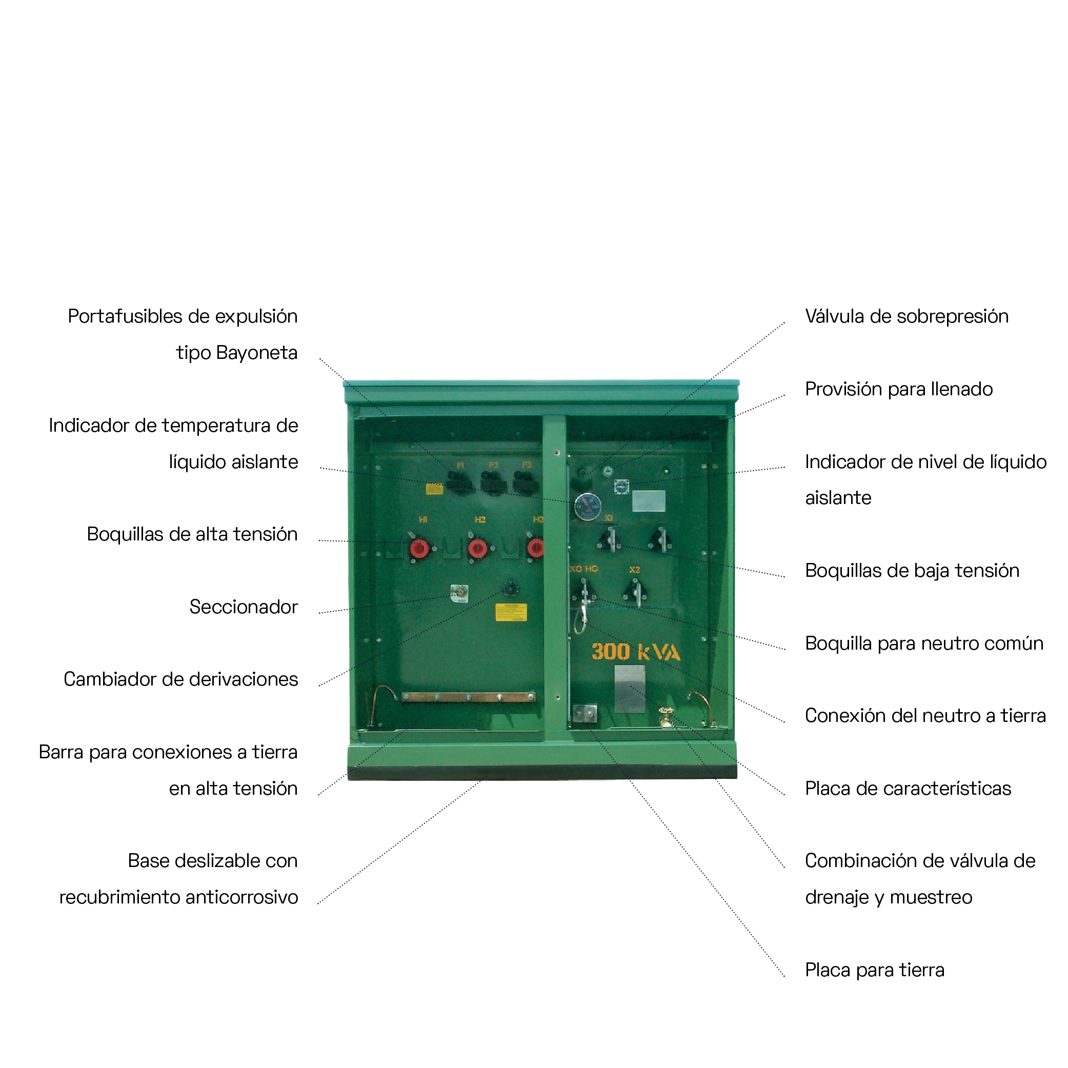 • Líquido aislante: Aceite mineral