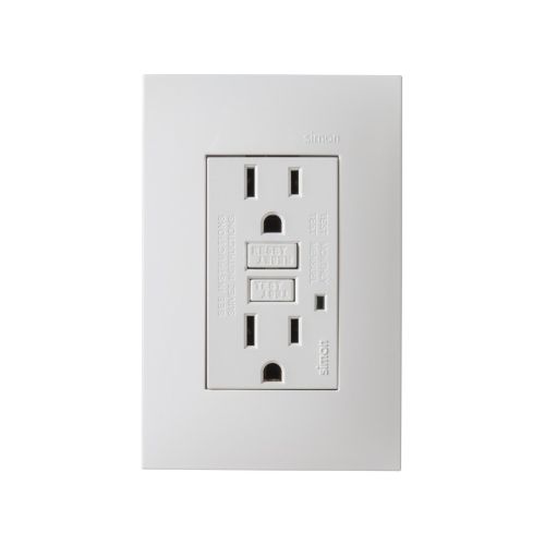 Interruptor de circuito por falla a tierra GFCI con autotest chasis y placa blanco Simon 25 Plus