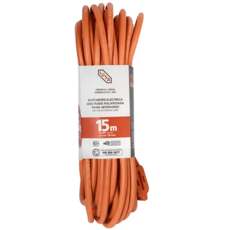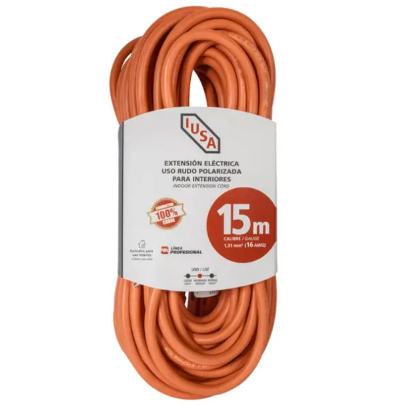 Extensión Anaranjada de Uso Rudo, IUSA, 2 x 16 AWG 15 M