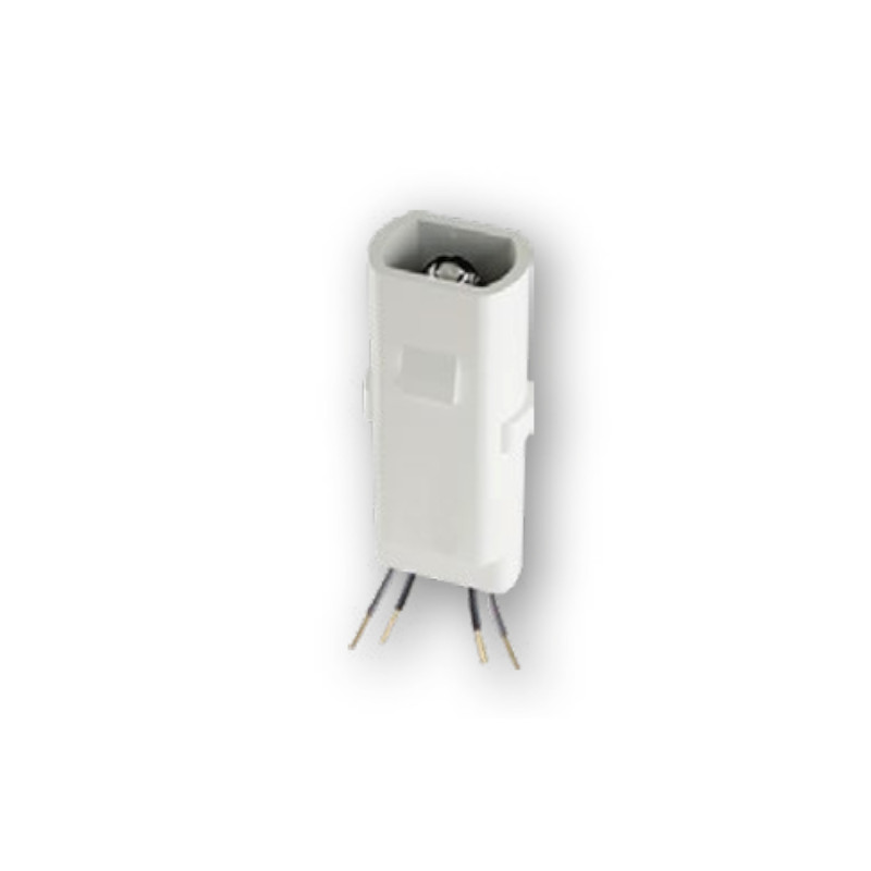 - Conjunto LED blanco bi-tensión con pieza de PC, resistencia, diodo rectificador y 2 cablecillos de unos 100 mm.