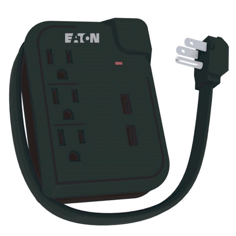 Multicontactos portátil, de 3 tomas 5-15R y 2 USB con acabado exterior en negro opaco. Características