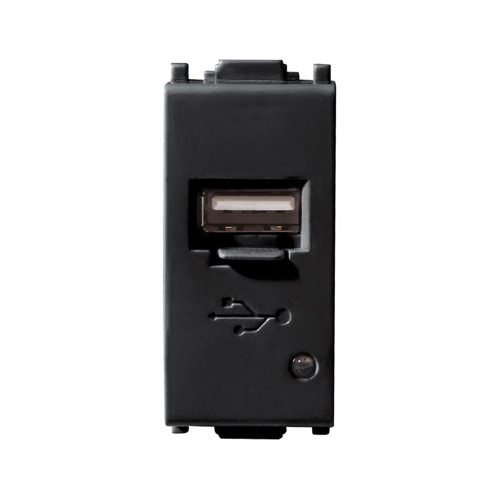 CONTACTO DÚPLEX 2P+T CON 2 PUERTOS USB CON PLACA BLACK ALPHA ESTEVEZ