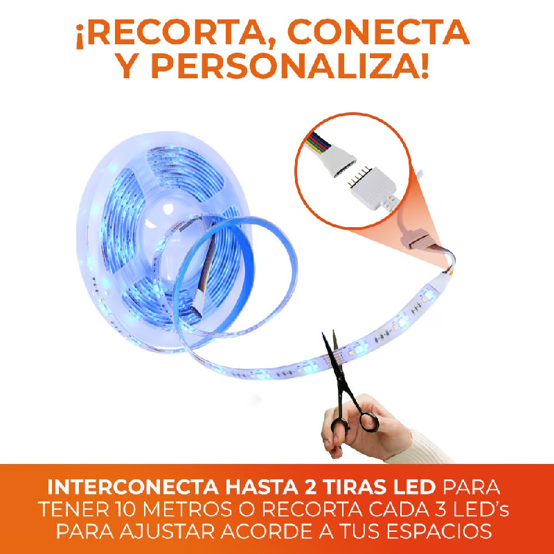 - Interconecta hasta 2 tiras LED y ten un total de 10 metros de largo.