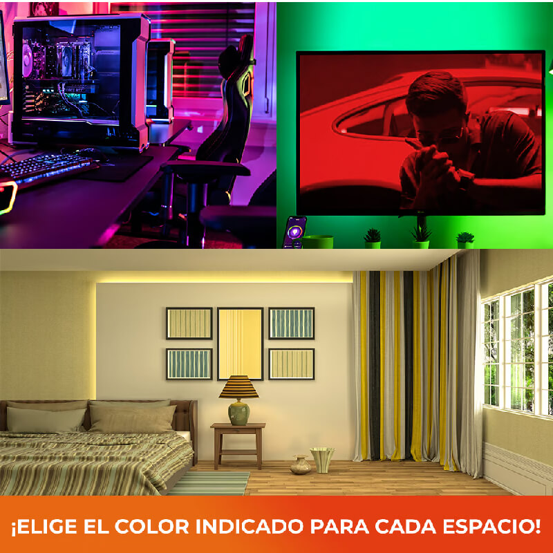 Con nuestra iluminación inteligente tus luces harán todo lo que tú quieras, disfruta de la tecnología y ahorra en el consumo energético. ¡Las tiras Smart Strip no solo harán que tus videos para YouTube, TikTok, Livestreams de videojuegos, Zooms o cualquier espacio luzca distinto, también generarán una excelente iluminación decorativa.