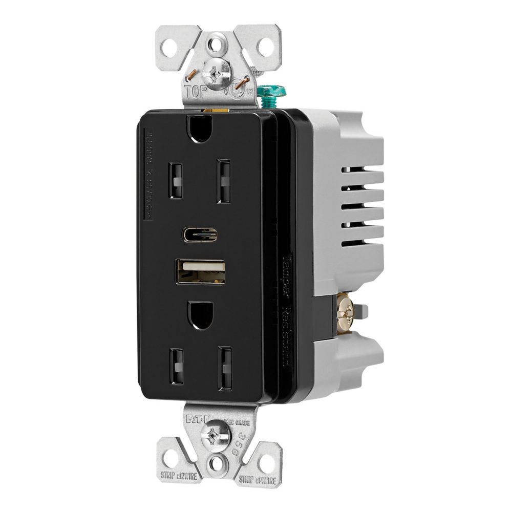 RECEPTÁCULO DÚPLEX USB TIPO A/C 15A 125V NEGRO EATON ARROW HART